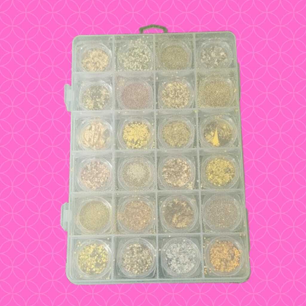 Mix De Glitter Dourado C/24 Para Decoração De Unha Nail Art - Fingertip Color